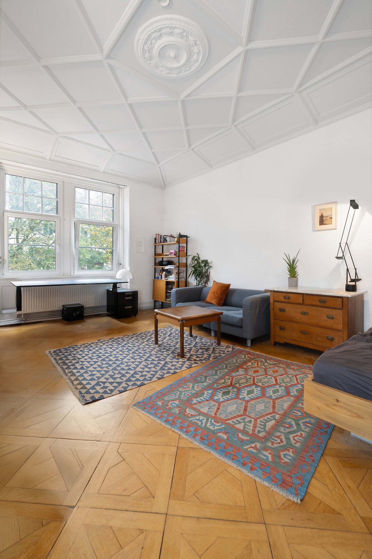 Originale Ausstattungs-Elemente wie das Echtholz-Parkett im Fischgrät- und Stabmuster, Deckenstuck oder die Bodenfliesen im Küchen-, Flur- und Sanitärbereich lassen das Flair der Jugendstil-Epoche weiterleben. Raumhöhen von über 3 Metern verbreiten Großzügigkeit und unterstreichen den Altbau-Charme der Stadtwohnung. Durch entsprechende Renovierungs- und Sanierungsmaßnahmen könnten Sie dieses Juwel in neuem Glanz erstrahlen lassen. Bei Bedarf stehen Ihnen hier unsere firmeneigenen Handwerker bei der Modernisierung tatkräftig zur Seite. Mit Erfahrung, Fachwissen und Sorgfalt sorgen wir dafür, dass Ihr Projekt reibungslos und fachgerecht umgesetzt wird.