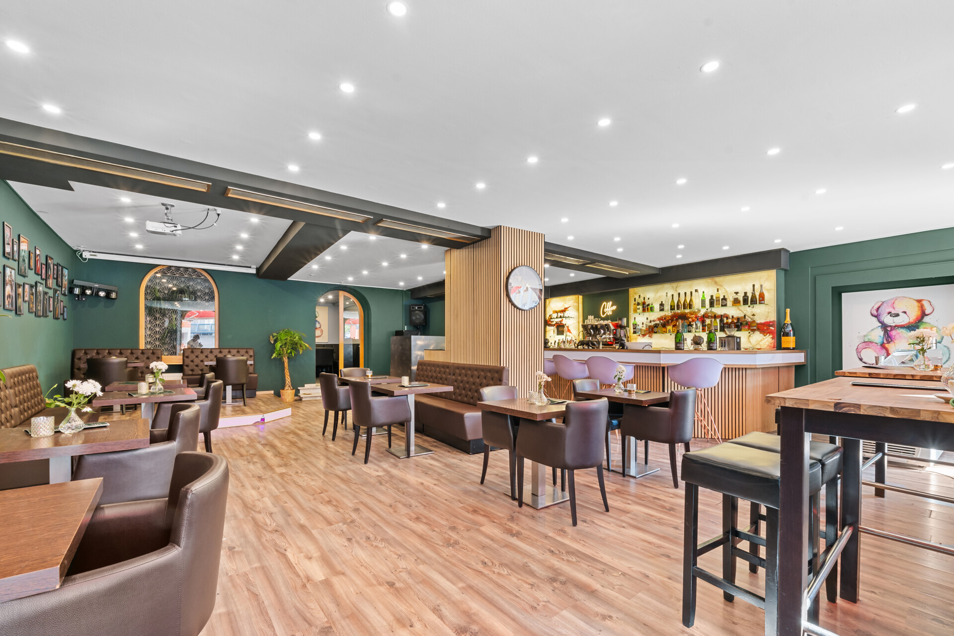 In den oberen Etagen befinden sich insgesamt fünf Wohneinheiten mit einer Gesamtwohnfläche von ca. 310 qm, die unterschiedliche Wohnkonzepte ermöglichen und teilweise bereits vermietet sind. Das Vorderhaus bietet eine helle 3-Zimmer-Wohnung im ersten Obergeschoss sowie eine großzügige 4-Zimmer-Maisonette-Wohnung über zwei Etagen mit Kamin und zusätzlicher Galerieebene – ideal für anspruchsvolles, urbanes Wohnen.