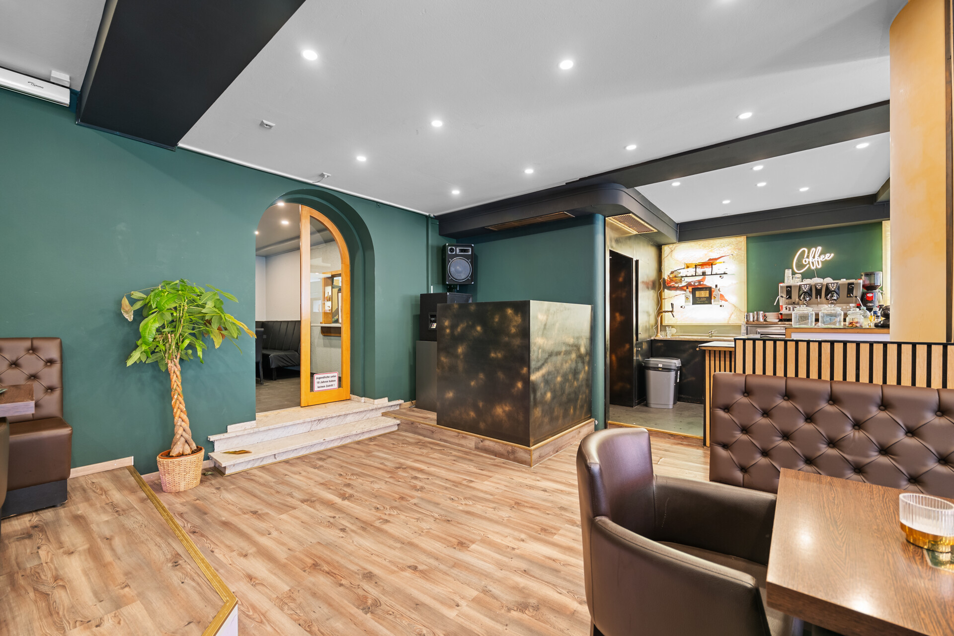 Die im Erdgeschoss befindliche Gewerbeeinheit mit ca. 175 qm ist derzeit als Bar verpachtet und stellt eine ergänzende Einnahmequelle dar. Das Objekt ist zur Hälfte unterkellert; der Keller wird vom Gewerbemieter als Lager genutzt.