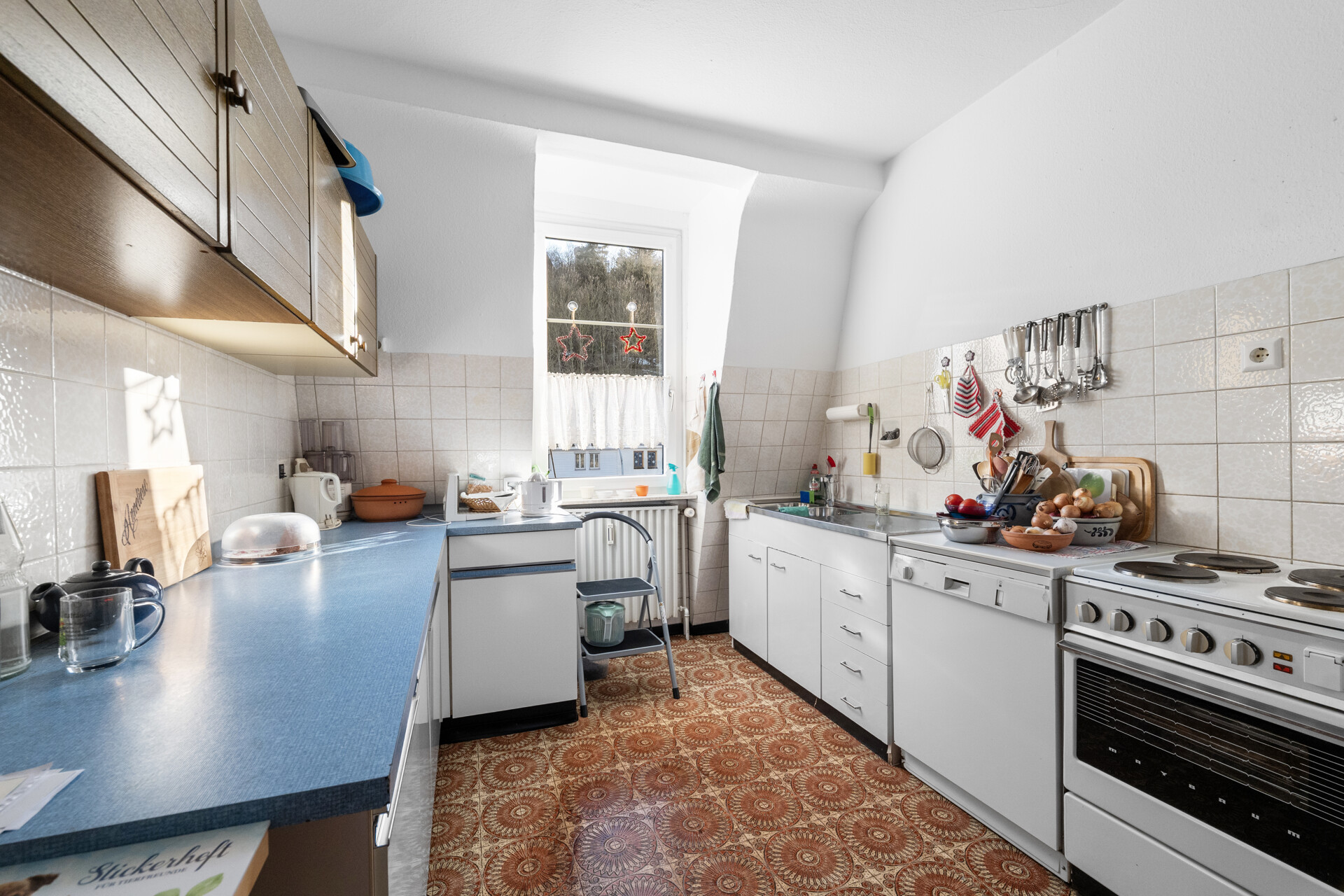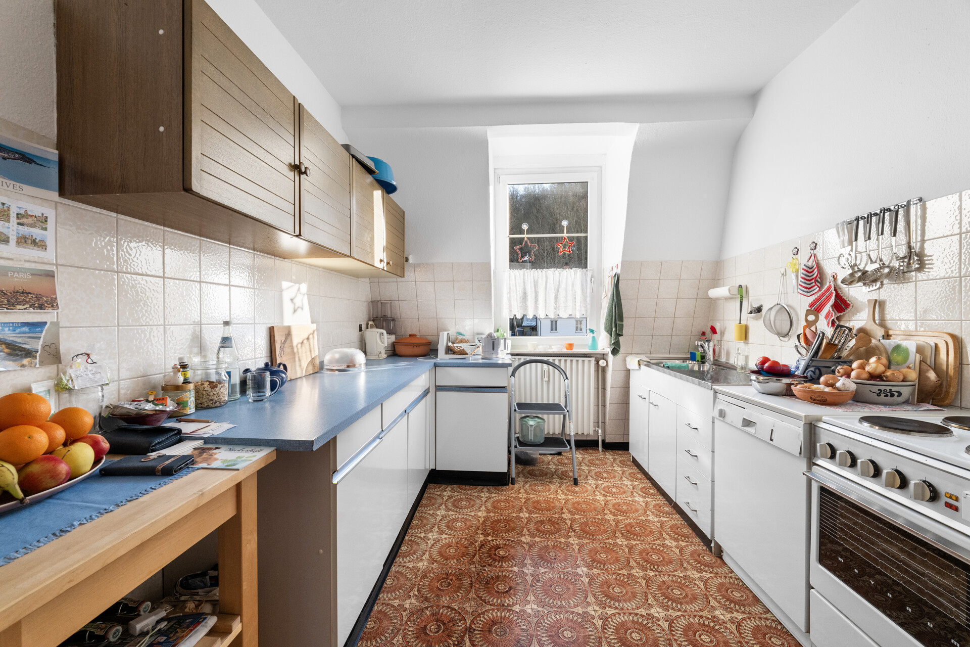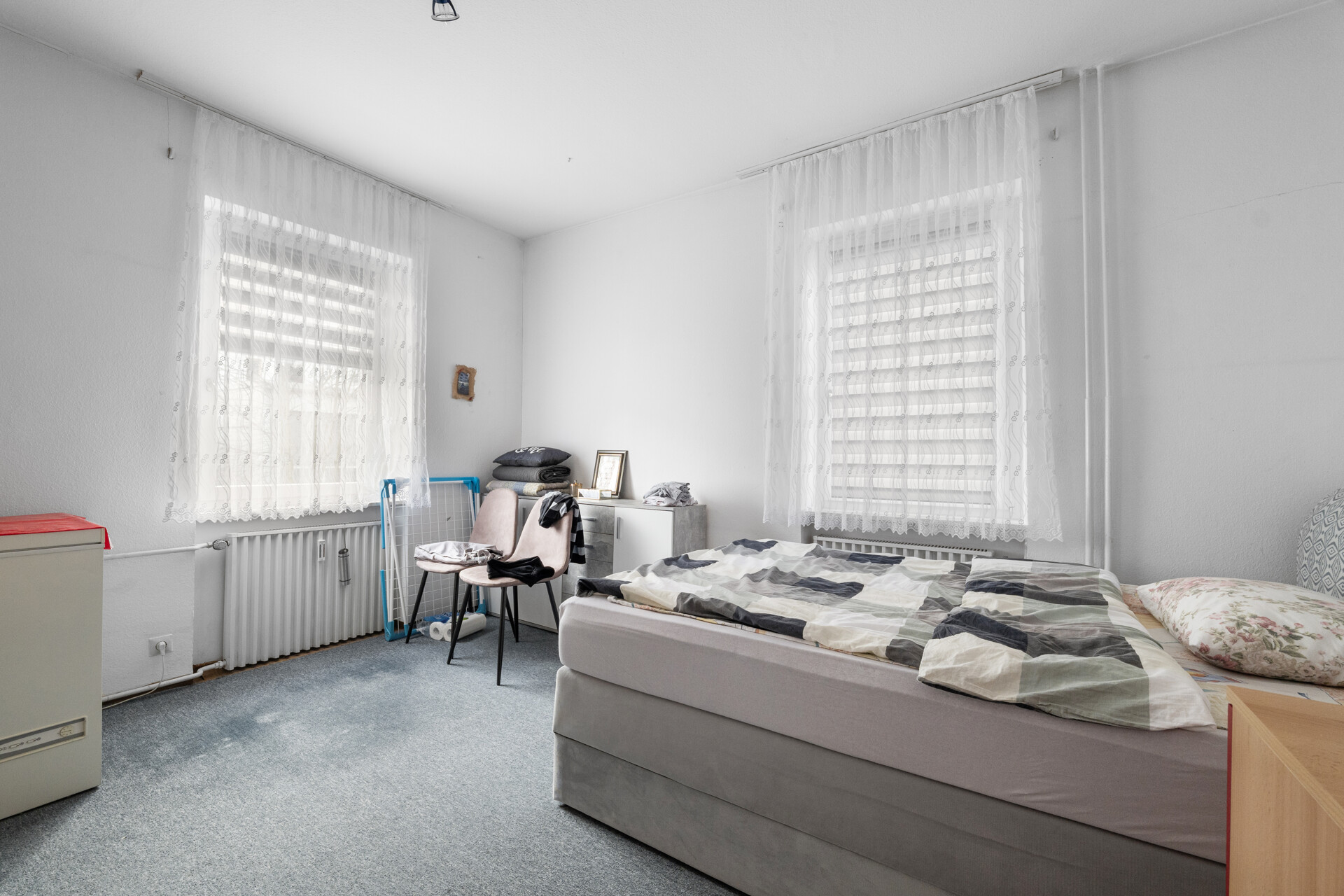 Darüber hinaus bietet die Immobilie weiteres Entwicklungspotenzial: Das Grundstück, auf dem sich derzeit die Garagen befinden, ist als Baugebiet ausgewiesen und eröffnet die Möglichkeit einer zusätzlichen Bebauung. Ebenso besteht die Option, das Dachgeschoss auszubauen und eine weitere Wohnung zu schaffen. Beheizt wird das Gebäude über eine Gaszentralheizung aus dem Jahr 1984.