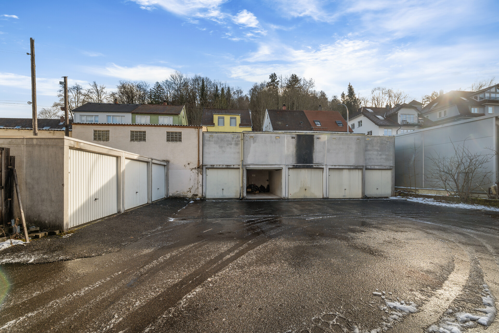 Ergänzt wird das Angebot durch insgesamt 13 Einzelgaragen auf dem Grundstück, die ebenfalls vollständig vermietet sind und einen zusätzlichen wirtschaftlichen Mehrwert darstellen. Die Kombination aus drei großzügigen Wohneinheiten und einer hohen Anzahl an Garagen unterstreicht den Kapitalanlagecharakter des Objekts.