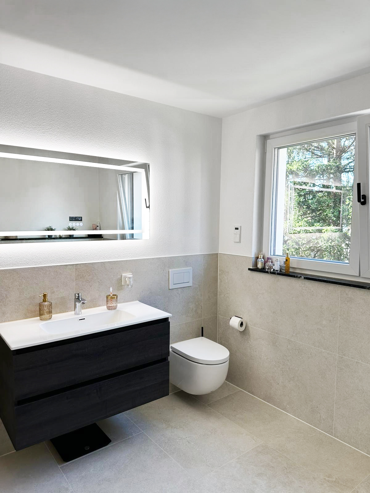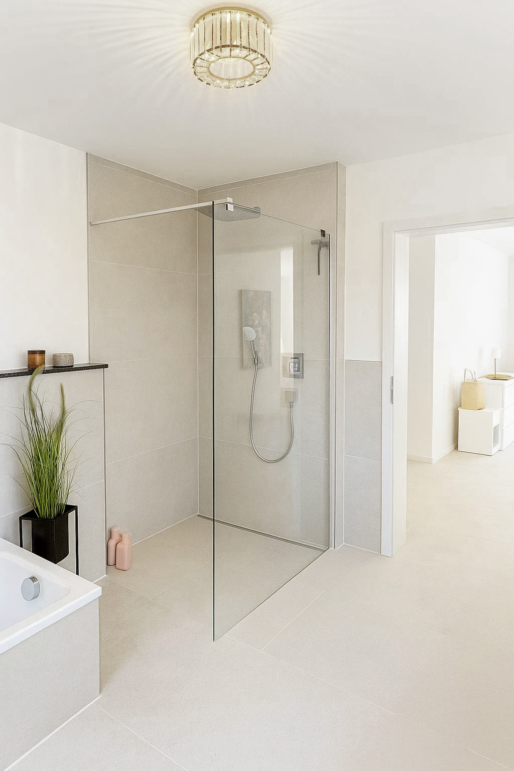 Die hochwertige Ausstattung der Wohnung wird Sie begeistern. Der Fußboden ist mit Feinsteinzeug und Vinyl in Holzoptik ausgestattet, die Wände sind verputzt und weiß gestrichen. Fenster und Terrassentüre sind 3-fach isolierverglast mit Kunststoffrahmen und außenlaufenden, elektrischen Rollläden. Bei den Zimmertüren kommen weiße Holztüren in Holzzargen zum Einsatz. Im Bad sind Wände und Böden mit Großformatfliesen gestaltet, Waschtisch, WC-Keramik, Wanne, Dusche und Armaturen sind Produkte hochwertiger Markenanbieter. Eine exklusive Einbauküche mit Markengeräten von Miele und Neff komplettiert die anspruchsvolle Gestaltung der Räume.