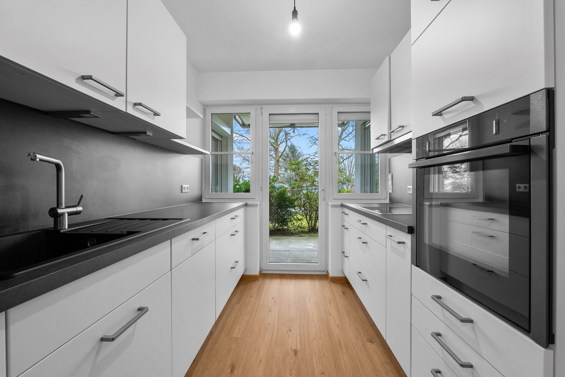Das zusätzliche Zimmer bietet ausreichend Platz für individuelle Gestaltung und Rückzug. Die separate Küche ist funktional geschnitten und mit einer modernen Einbauküche mit Markengeräten ausgestattet.