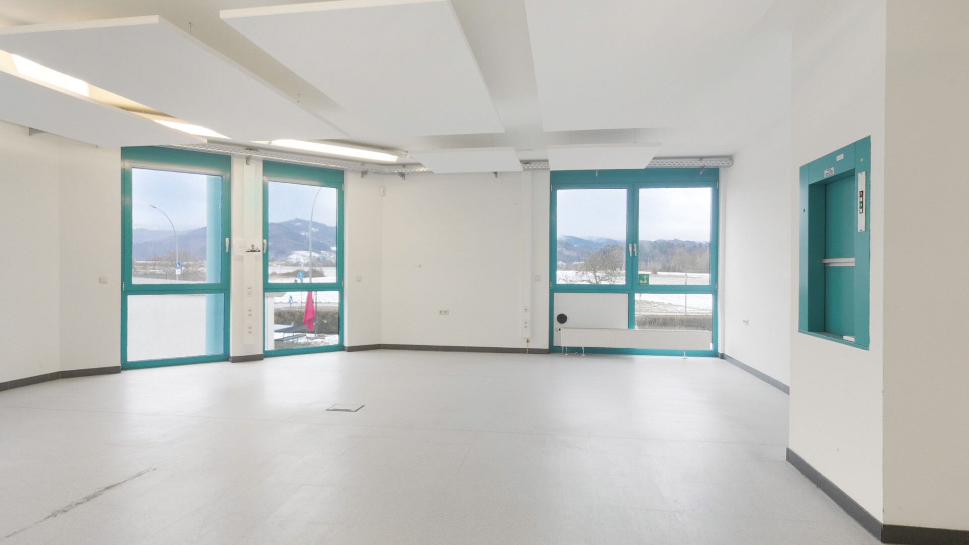 Empfangs- und Büroflächen mit großen Fenstern für natürliches Licht