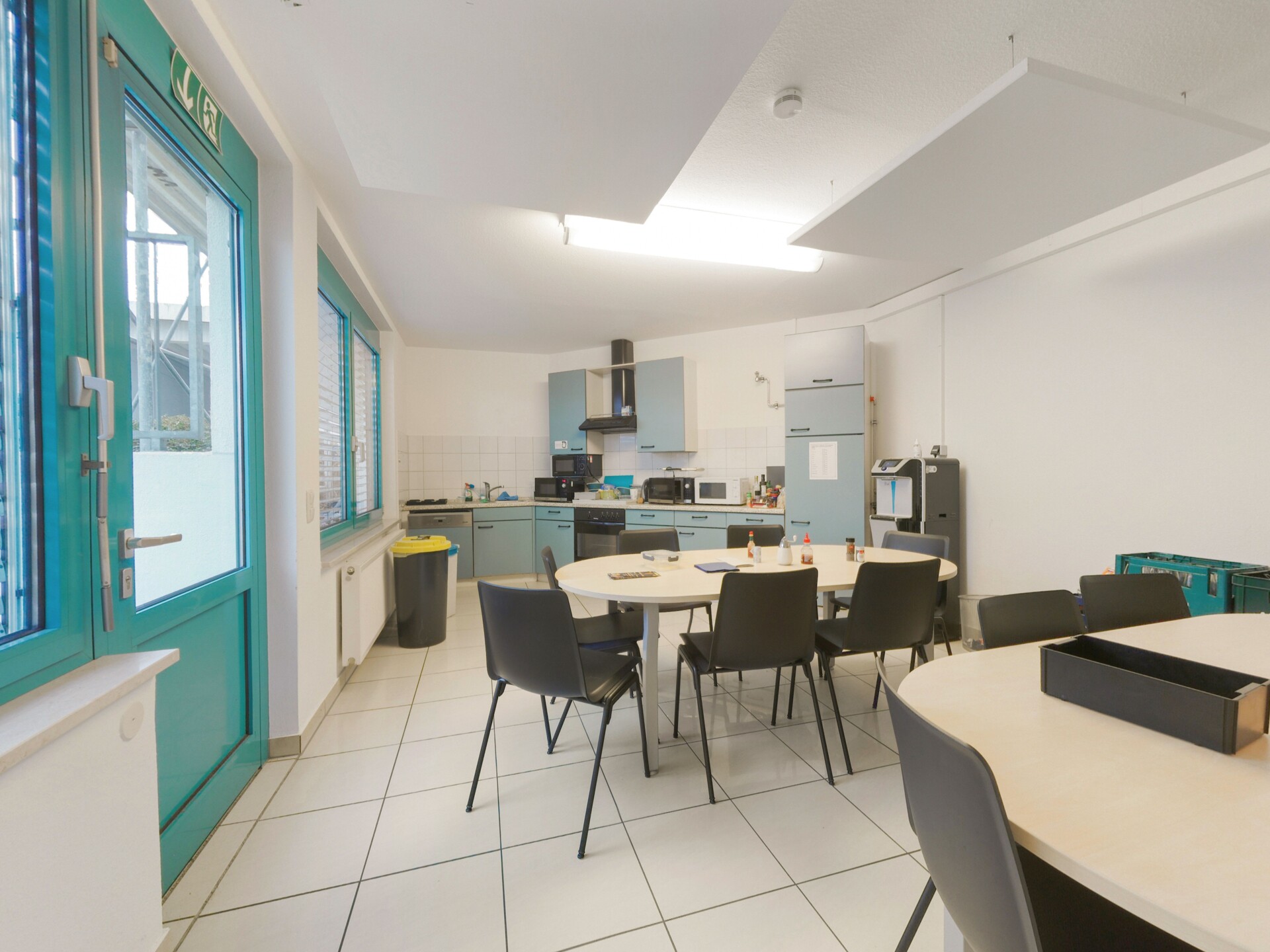 Geräumige Küche mit großen Fenstern und separatem Eingang