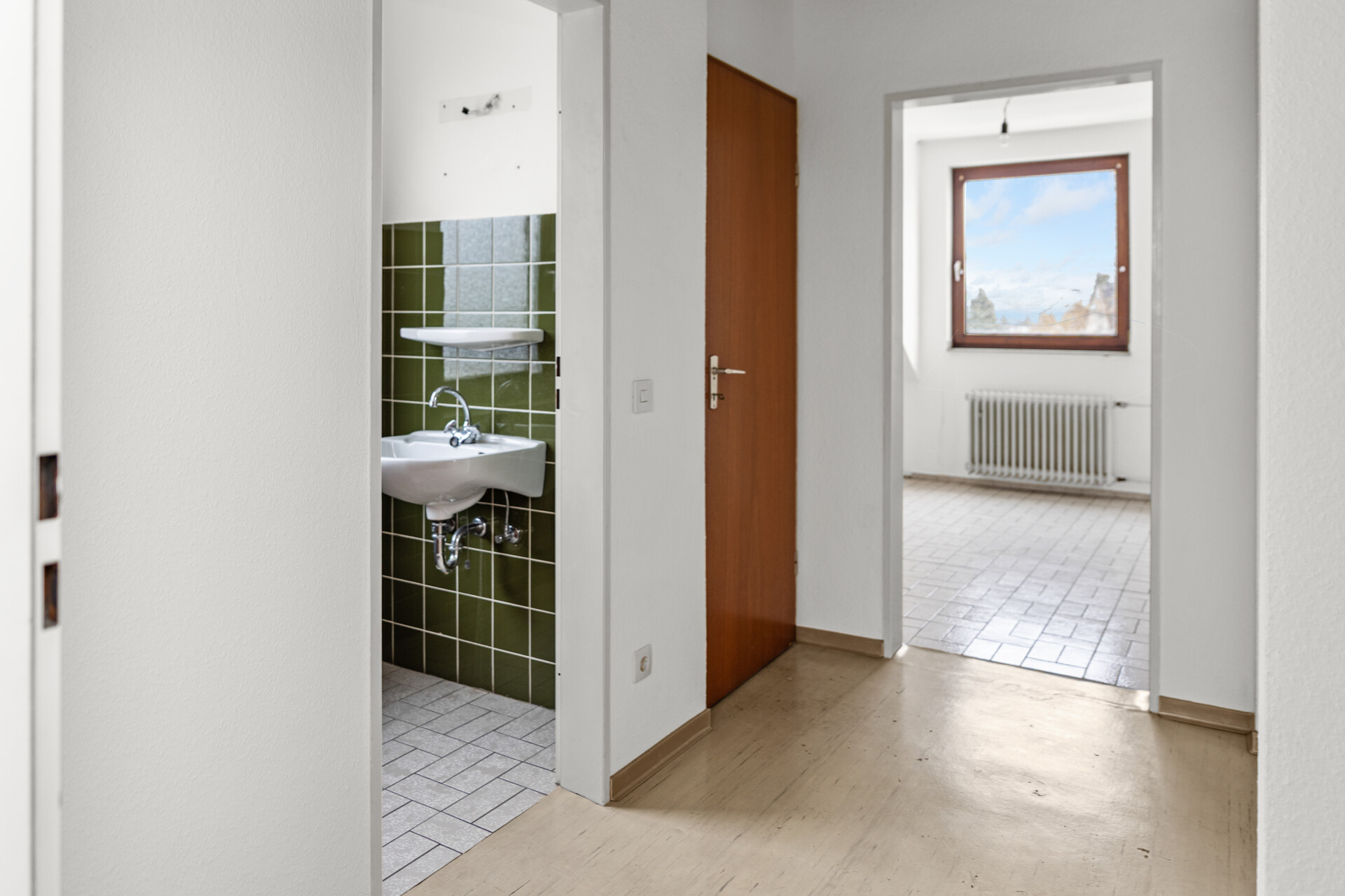 Kombination aus Fliesen, Parkett und Teppichboden