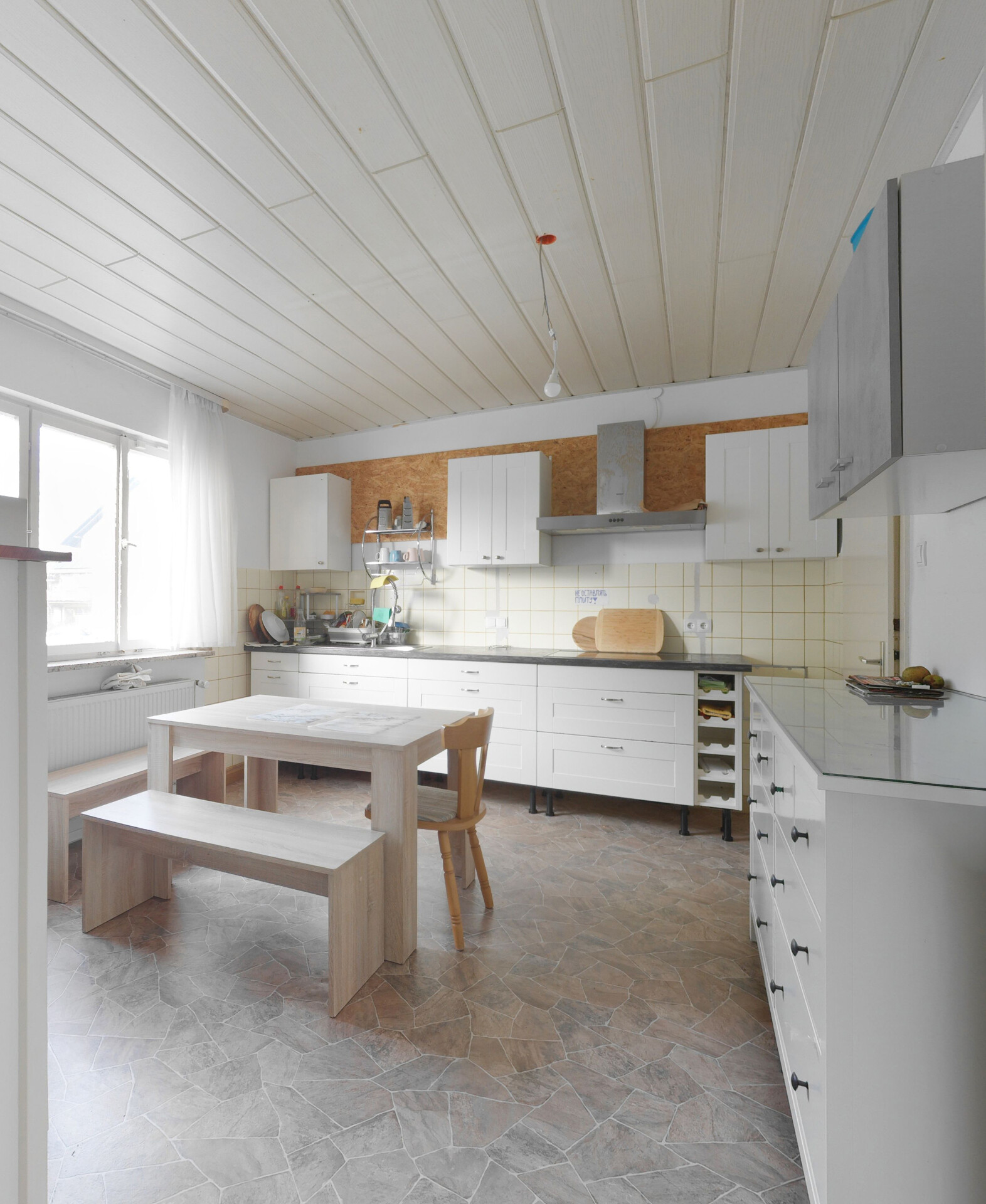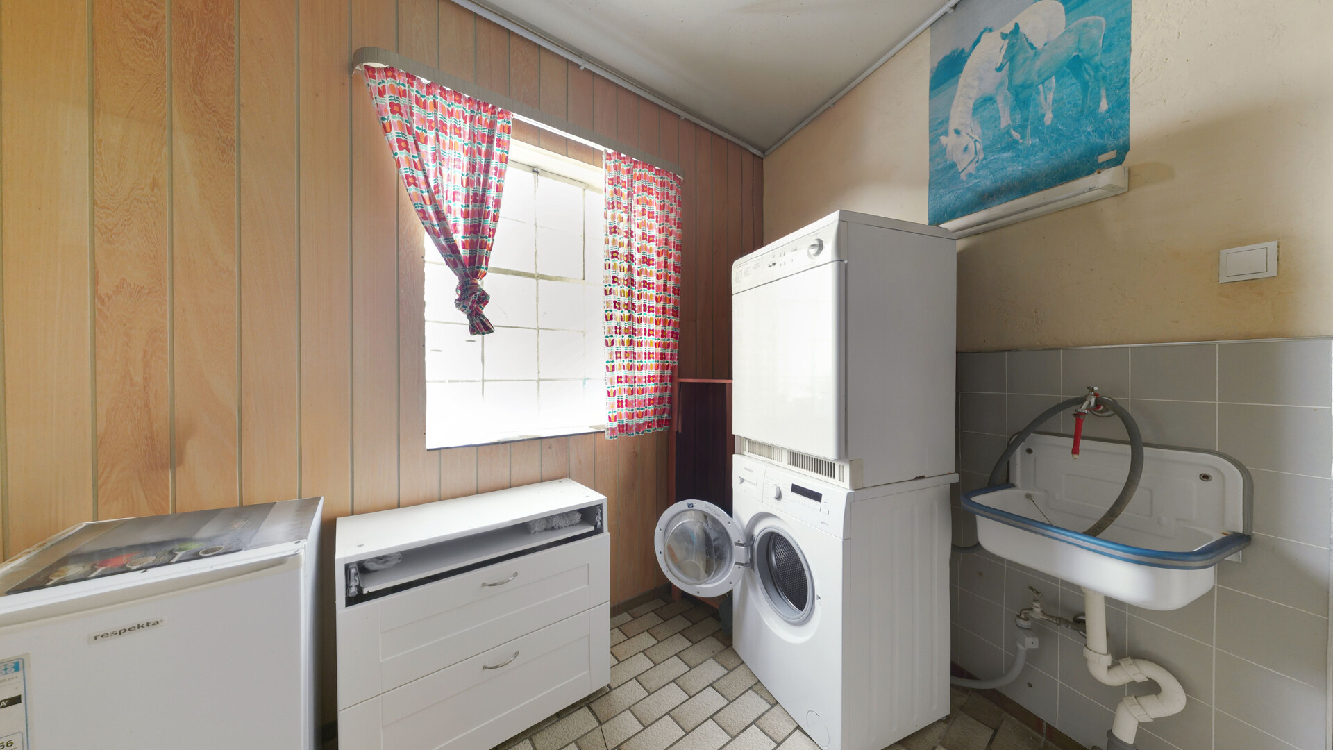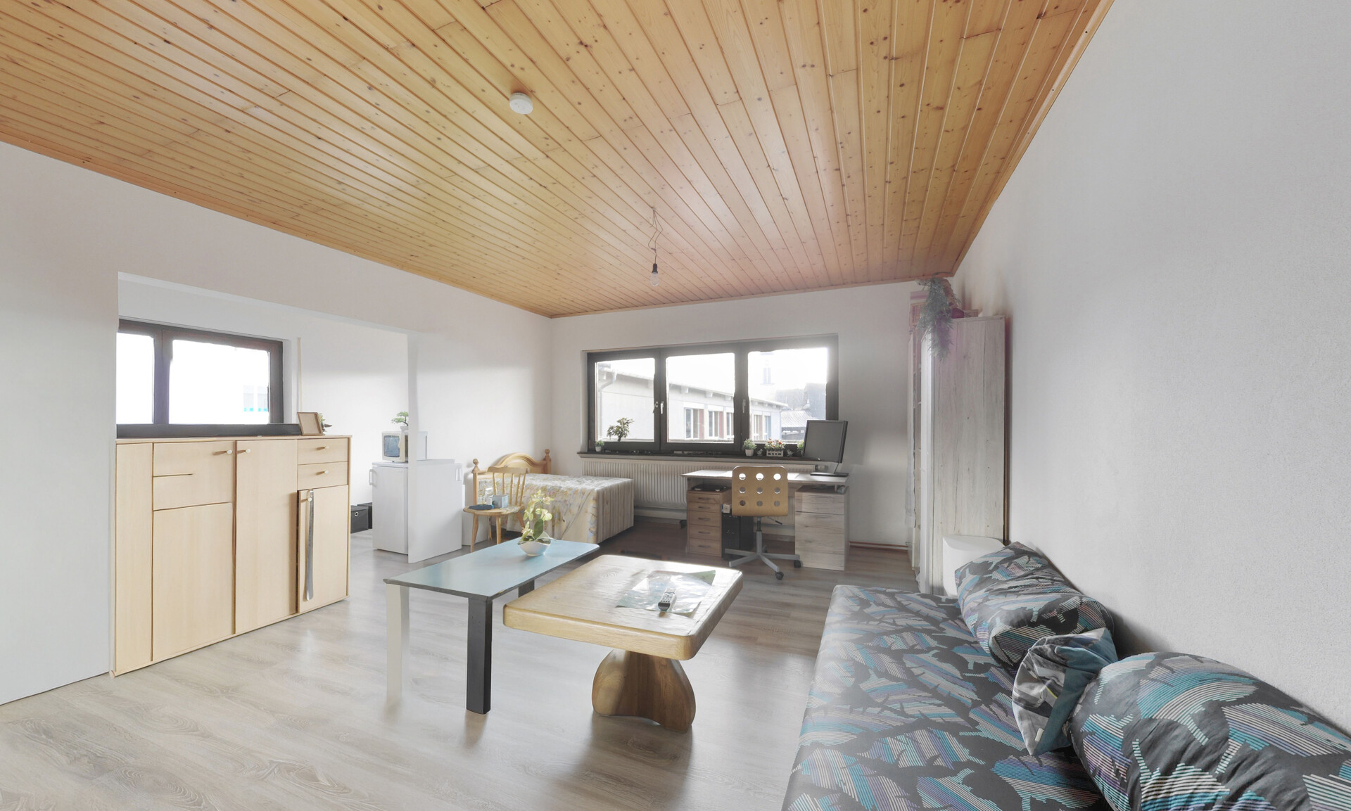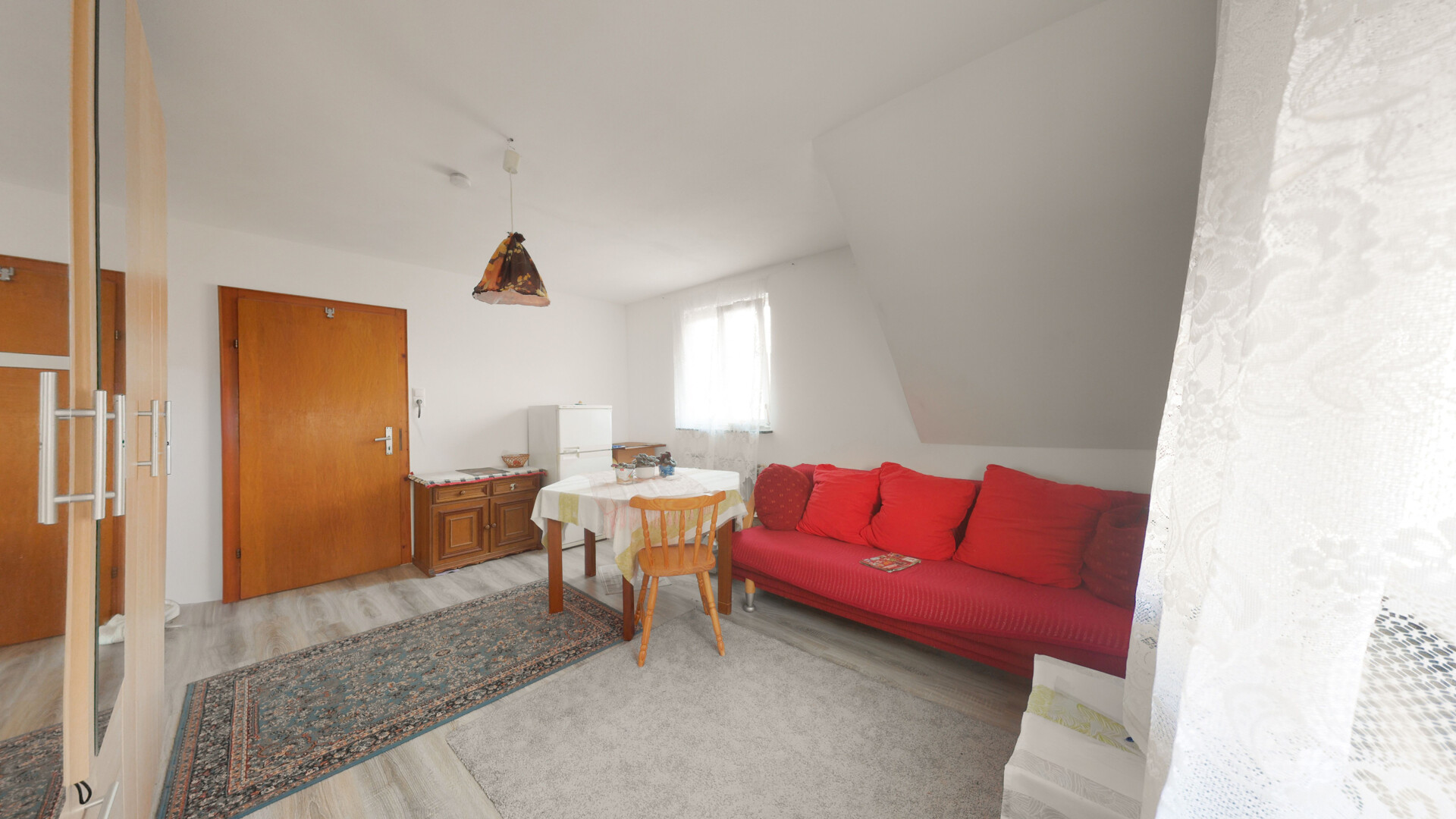 •Bodenbeläge: Mischung aus Fliesen, Laminat und Linoleum, jeweils zweckmäßig gewählt und pflegeleicht