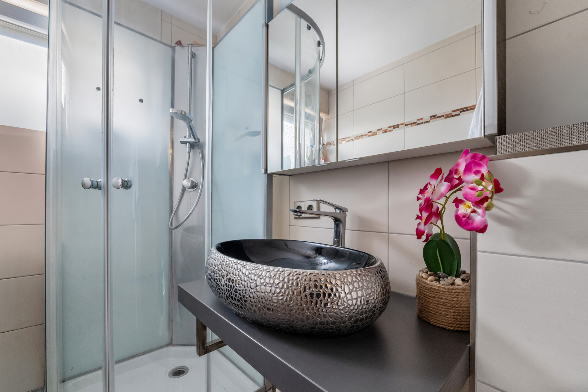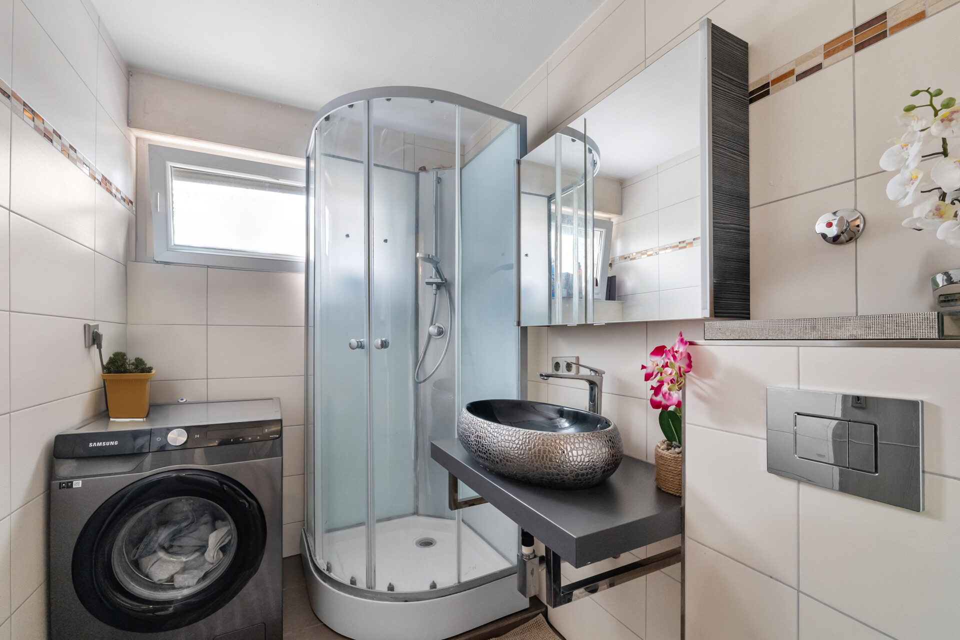 Die moderne Einbauküche ist mit zeitgemäßen Geräten ausgestattet und bietet alles, was Hobbyköche sich wünschen. Das geschmackvoll gestaltete Badezimmer überzeugt durch hochwertige Materialien und ein ansprechendes Design.