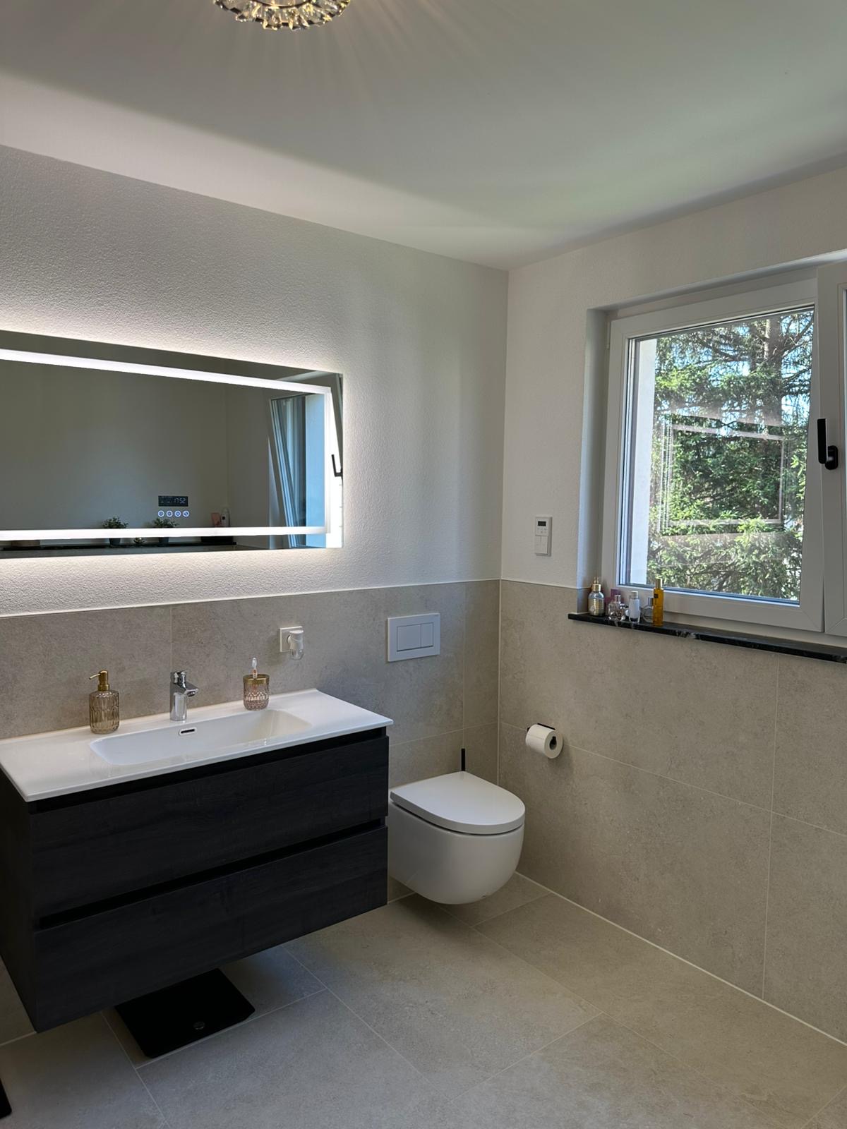 Die hochwertige Ausstattung der Wohnung wird Sie begeistern. Der Fußboden ist mit Feinsteinzeug und Vinyl in Holzoptik ausgestattet, die Wände sind verputzt und weiß gestrichen. Fenster und Terrassentüre sind 3-fach isolierverglast mit Kunststoffrahmen und außenlaufenden, elektrischen Rollläden. Bei den Zimmertüren kommen weiße Holztüren in Holzzargen zum Einsatz. Im Bad sind Wände und Böden mit Großformatfliesen gestaltet, Waschtisch, WC-Keramik, Wanne, Dusche und Armaturen sind Produkte hochwertiger Markenanbieter. Eine exklusive Einbauküche mit Markengeräten von Miele und Neff komplettiert die anspruchsvolle Gestaltung der Räume.