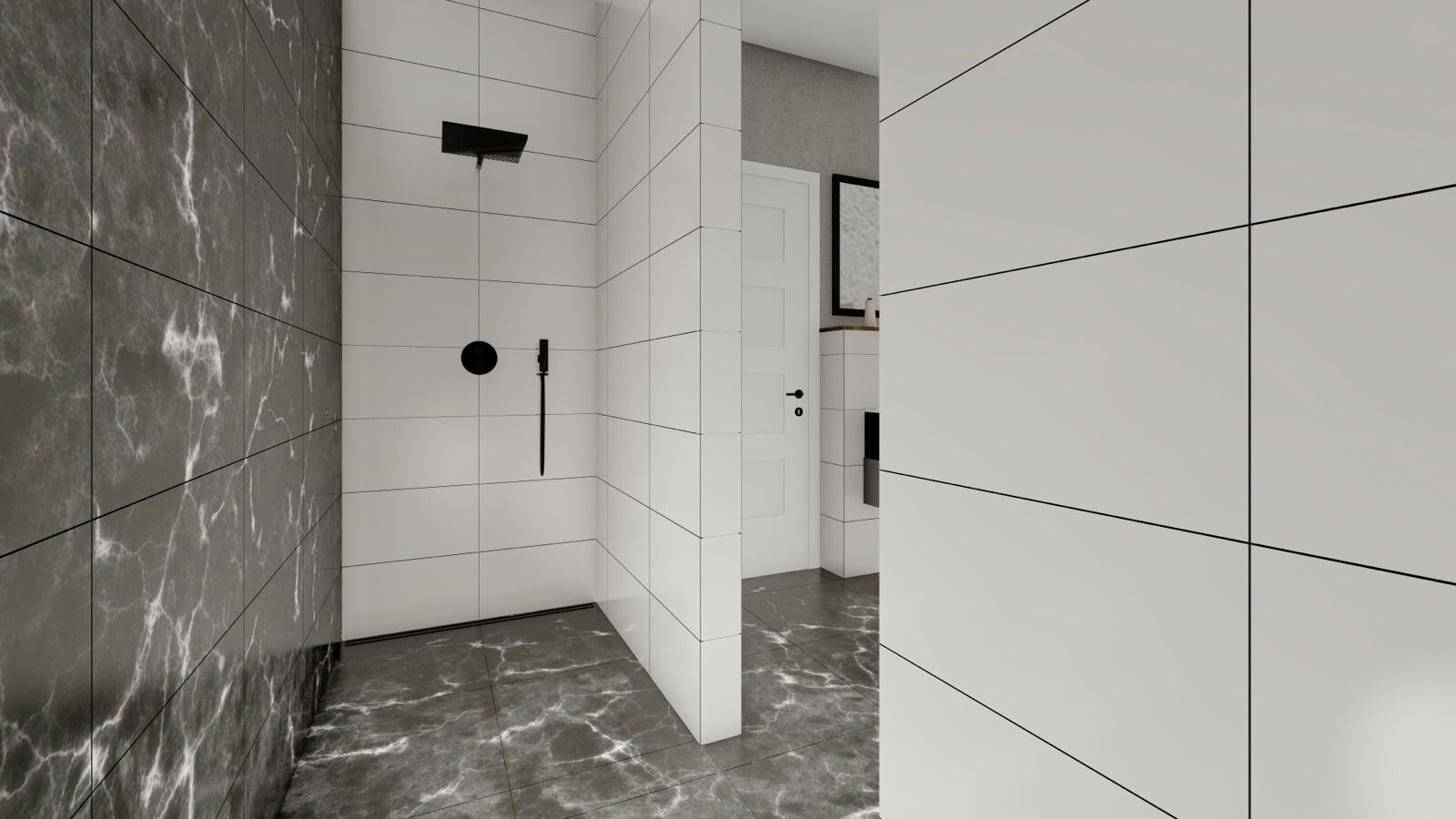 Fliesenböden + Wände gefliest, bodenebene Dusche, Waschplatz, WC, Tageslicht