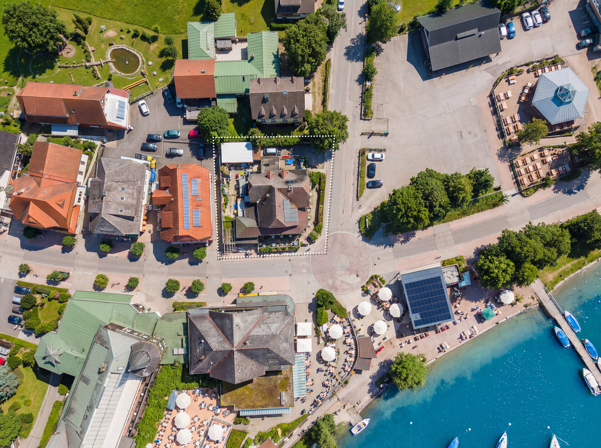 Das historische Haust liegt an der Seestraße 25, direkt in der Fußgängerzone sowie unmittelbar am Seeufer und bietet damit eine einzigartige Positionierung. Die Seestraße ist die zentrale Flanier- und Handelsachse des Ortes und bildet den Kern der touristischen Infrastruktur. Die unmittelbare Nähe zum Wasser sowie der prominente Standort in der Promenade sorgen für eine außergewöhnliche Sichtbarkeit und eine konstante Laufkundschaft. Die Mikrolage zeichnet sich durch eine dichte Ansammlung von Gastronomie, Handel und touristischen Angeboten aus. Entlang der Seestraße befinden sich zahlreiche Restaurants, Cafés, Souvenir-Shops und Freizeitangebote, wodurch die Aufenthaltsdauer der Besucher erhöht und die Frequenz nachhaltig gebündelt wird.