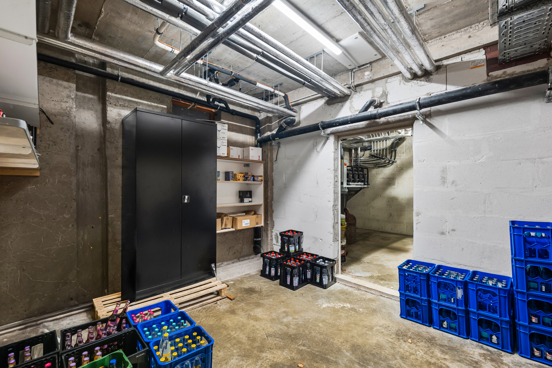 Zwischen Januar und März 2018 wurden umfangreiche Modernisierungs- und Umbaumaßnahmen durchgeführt, insbesondere in den Bereichen Technik, Infrastruktur und Betriebssicherheit (u. a. Elektrik, Leitungen, Kühlräume, Industriegastronomieküche, Wärmerückgewinnung, Solaranlage; jeweils nach Eigentümerangaben). Das Untergeschoss verfügt über funktional gegliederte Lager-, Neben- und Technikflächen.